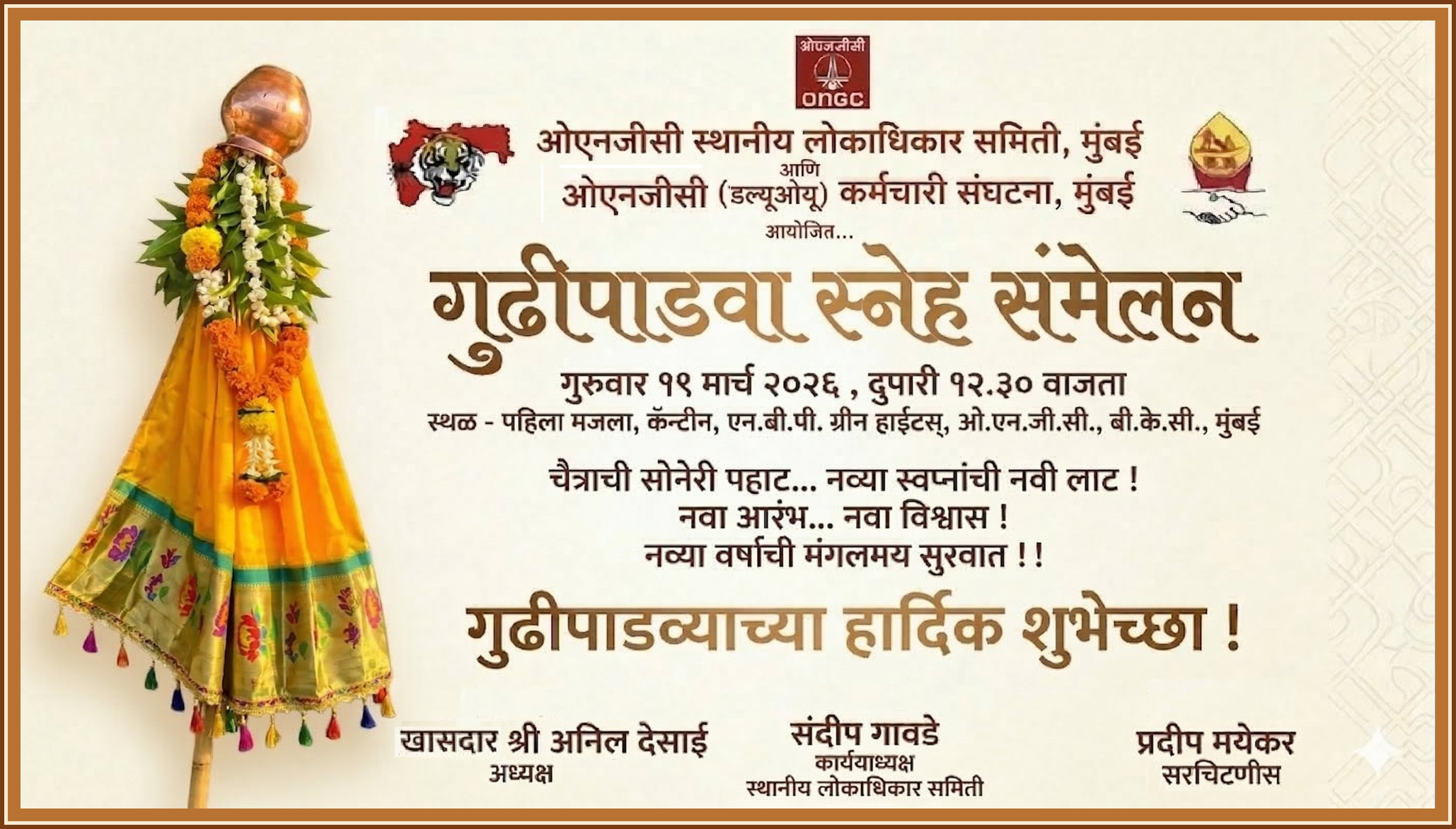 ओएनजीसी,मुंबई व्यवस्थापनातर्फे GM I/c - IR - श्री.विवेक झिणे